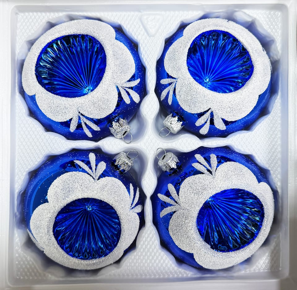 Bombki szklane 10cm reflektor 4 szt Ręcznie zdobione produkt PL niebieski