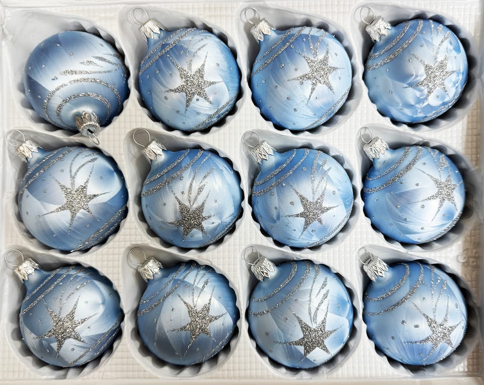Bombki szklane 6cm 12 sztuk Ręcznie zdobione. Produkt polski błękitny