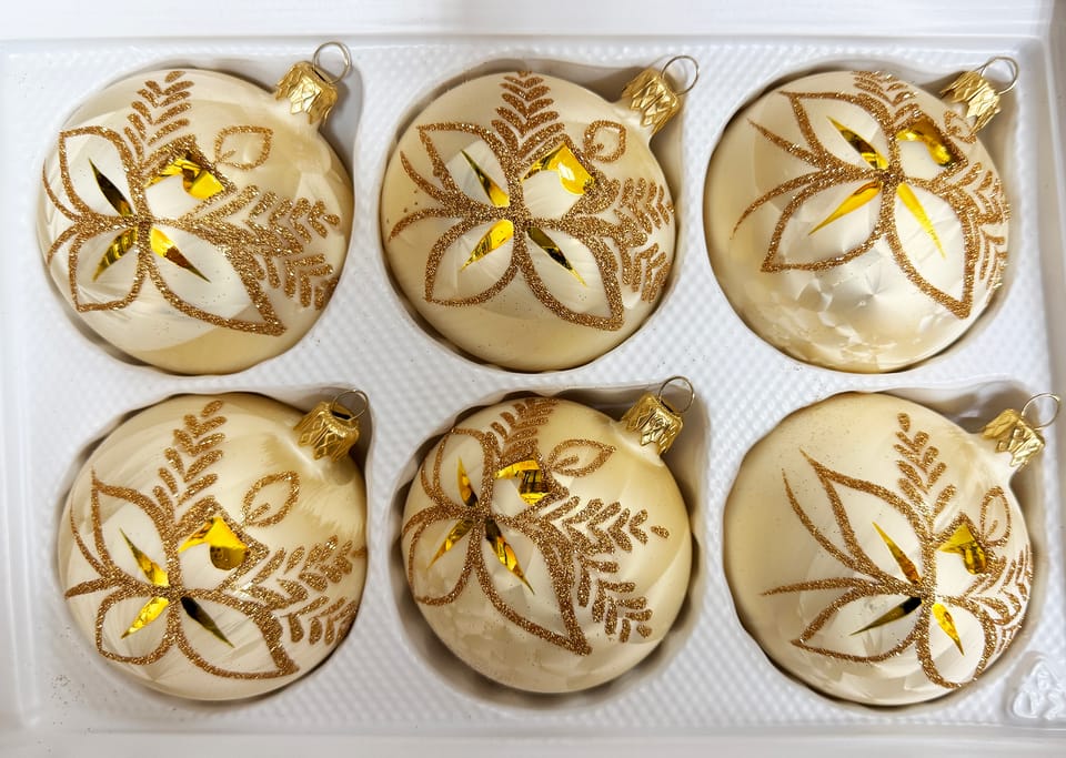 Bombki szklane 8cm 6 sztuk Ręcznie zdobione. Produkt polski złoty