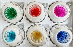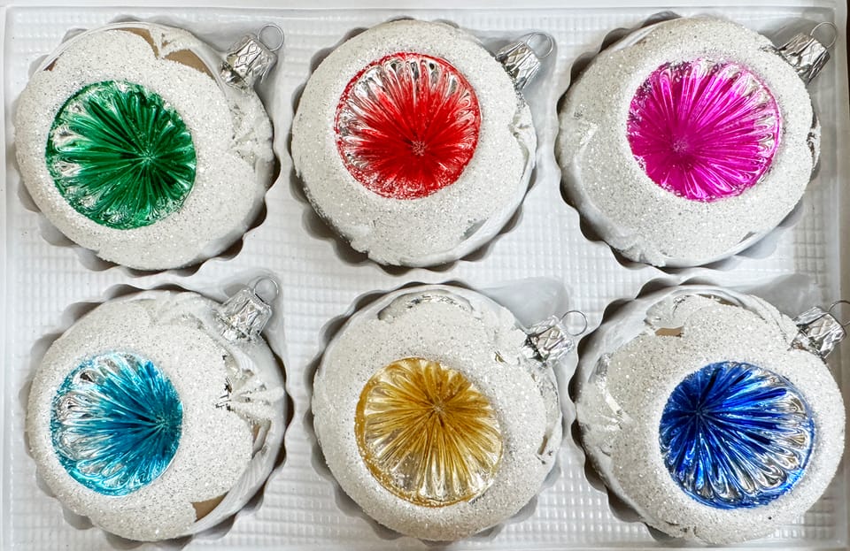 Takie bombki, to wspomnień czar. Ręcznie wytwarzane bombki szklane z reflektorem. Średnica 8 cm. Zestaw zawiera 6 sztuki. Produkt Polski. Walczmy z plastikiem, tylko szklane bombki mają w sobie to coś. Pomimo, że w opisie jest zdjęcie real, to ze względu na ręczne wykonanie, wzór i wymiar bombki może nieznacznie odbiegać od przestawionego na zdjęciu. Ręcznie nie da się bowiem zrobić, dwóch identycznych bombek. Myślę, że to jedna z ich zalet.