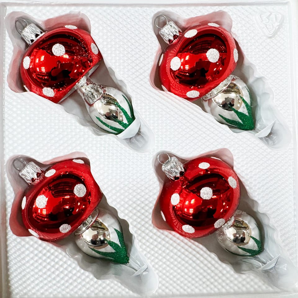Bombki szklane grzybki 4 sztuki Ręcznie zdobione. Produkt polski czerwony