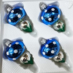 Bombki szklane grzybki 4 sztuki Ręcznie zdobione. Produkt polski niebieski