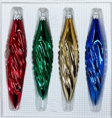 Ręcznie wytwarzane i dekorowane bombki szklane. Zestaw zawiera 4 sztuki skręconych sopli o długości ok. 12cm. Produkt polski. Walczmy z plastikiem, tylko szklane bombki mają w sobie to, świąteczne coś.