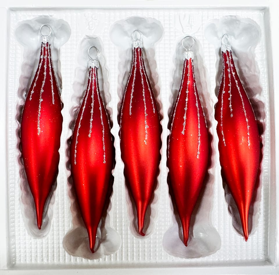 Bombki szklane sople 5 sztuk Ręcznie zdobione. Produkt polski czerwony