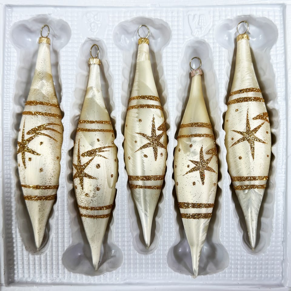 Bombki szklane sople 5 sztuk Ręcznie zdobione. Produkt polski złoty