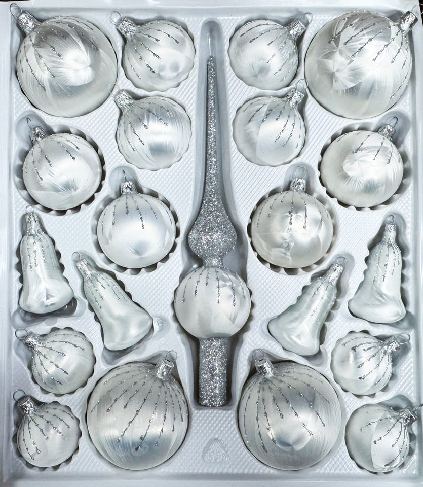 Bombki szklane Zestaw 21 sztuk Ręcznie zdobione. Produkt polski biały