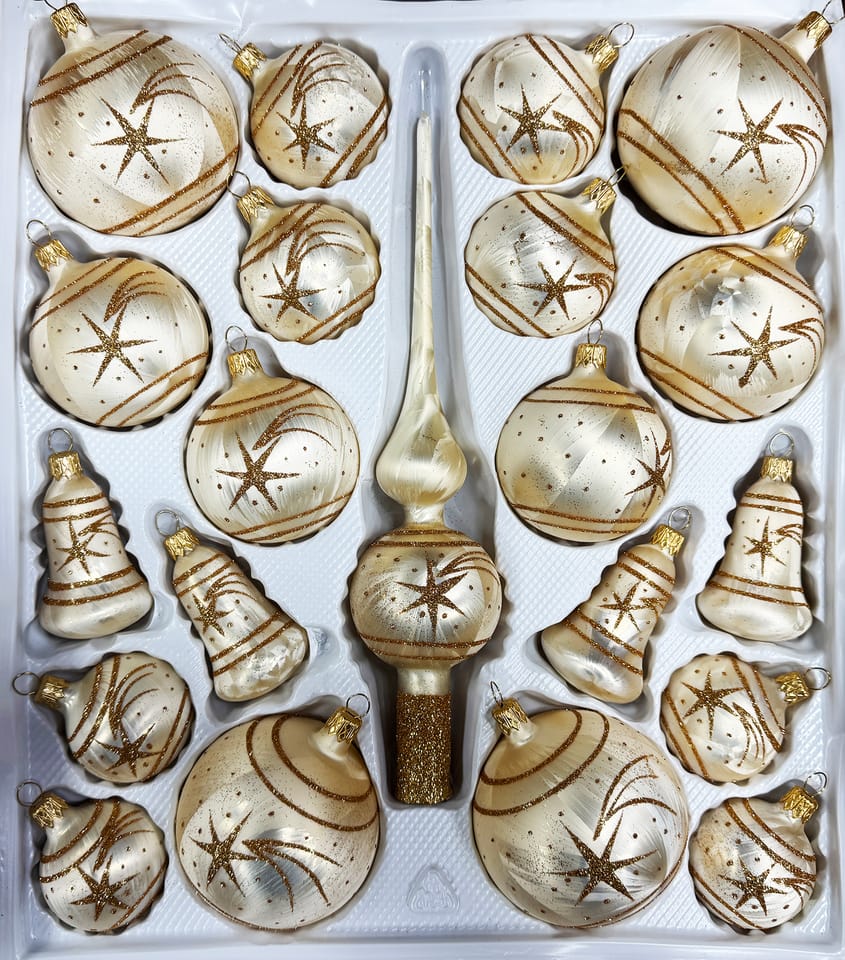 Bombki szklane Zestaw 21 sztuk Ręcznie zdobione. Produkt polski złoty