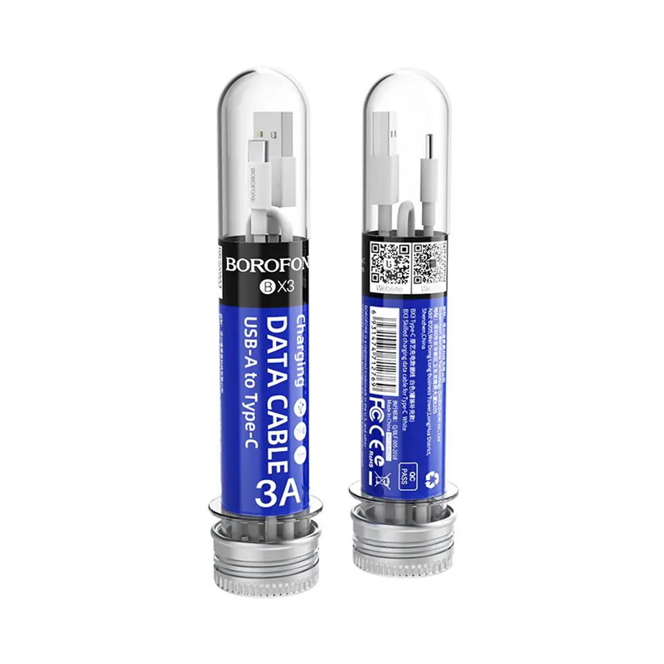 Borofone - Kabel USB-A do USB-C zapakowany w tubę, 1 m Biały