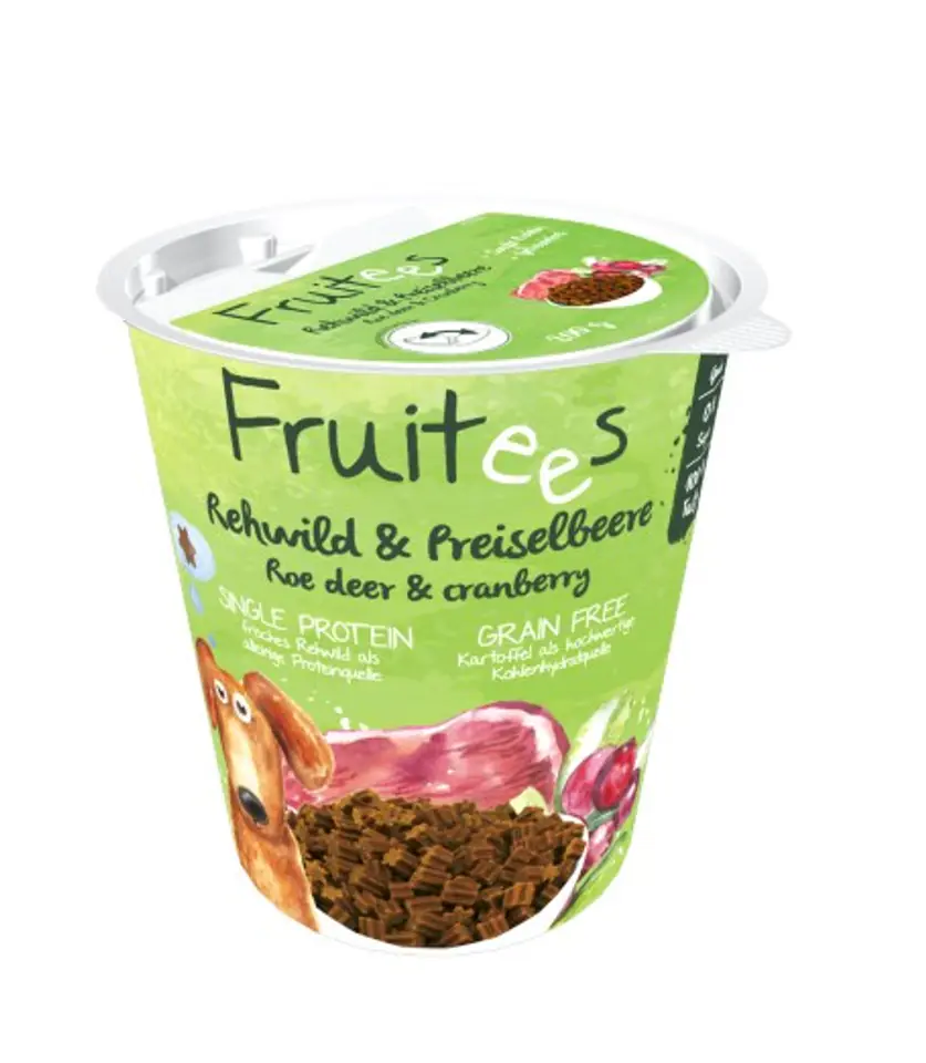Fruitées z sarną i żurawiną to niezwykle smaczny i soczysty przysmak z min. 20% świeżego mięsa, aby Twój pies miał zdrową nagrodę szkoleniową oraz przekąskę na każdą okazję.