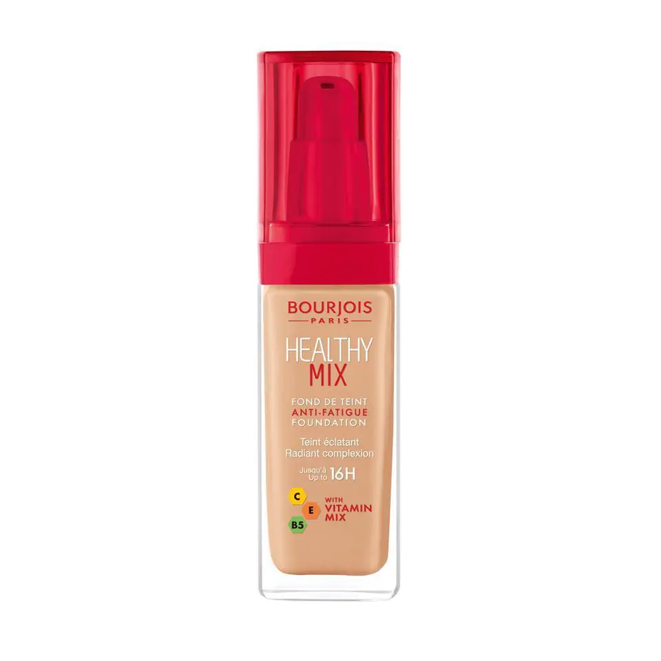 Ten podkład to prawdziwa bomba (witamin)! Bourjois Healthy Mix zapewni Twojej cerze świeży i promienny wygląd*. Formuła z kompleksem witamin C, E i B5 odżywia skórę, pomaga ukryć oznaki zmęczenia i niedoskonałości. Twoja skóra będzie promienna i nawilżona nawet do 24h. C'est magnifique! Teraz wszystko będzie już w Twoich rękach (dosłownie!), więc wybierz odcień, idealnie dopasowany do siebie.POWIEDZ BONJOUR PROMIENNEJ CERZE: - Zawiera kompleks witamin, który natychmiast niweluje oznaki zmęczenia i niedoskonałości- Formuła zawiera specjalne pigmenty, które zapewniają subtelne, naturalne wykończenie- Dzięki płynnej konsystencji podkład doskonale rozprowadza się na skórze i pozwala jej oddychaćLE MIX, C'EST CHIC!Użyj pędzla albo rozprowadź podkład palcem lub gąbką na całej twarzy, aby połączył się ze skórą również przy linii włosów i szyi. Rozprowadź cienką warstwę dla naturalnego wykończenia. Użyj podkładu do wyrównania kolorytu skóry, ukrycia niedoskonałości, ciemnych plam lub podkrążonych oczu. Do nałożenia grubszej warstwy podkładu w niektórych miejscach, użyj pędzelka do korektora.