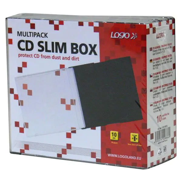 Opakowanie zawiera 10 szt. pudełek na CD slim (5,2 mm) w kolorze czarnym.