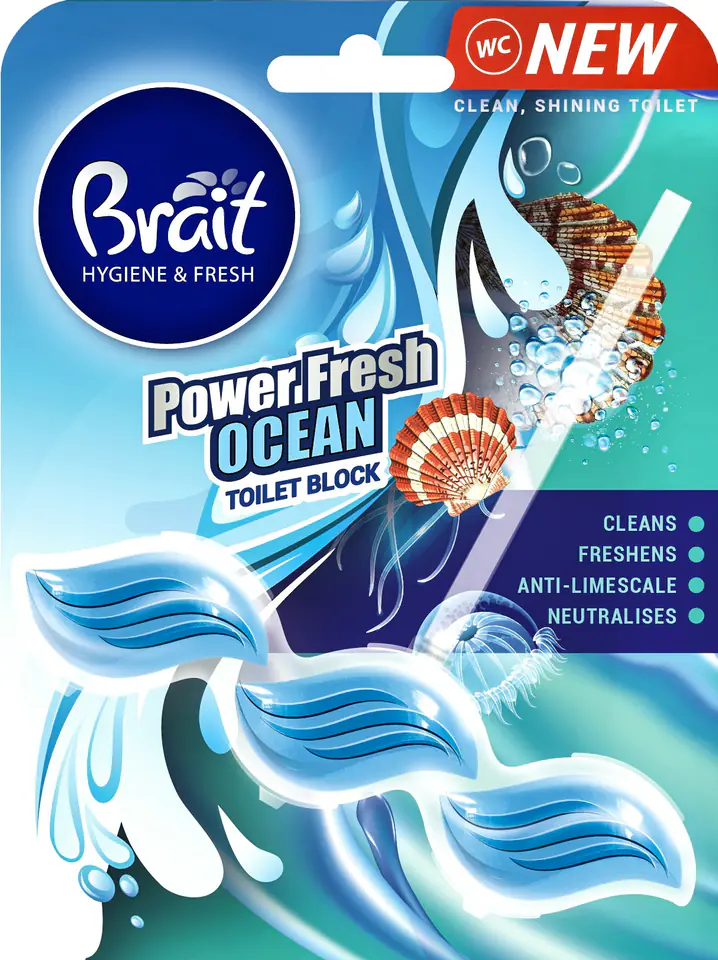Zawieszka WC Brait zapewnia higieniczną czystość i ochronę przed osadzaniem się kamienia w toalecie, dając przyjemny morski zapach.