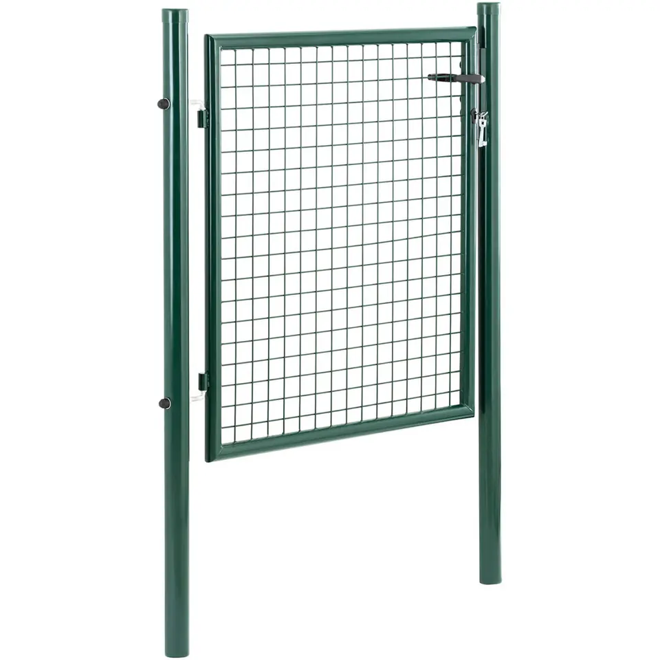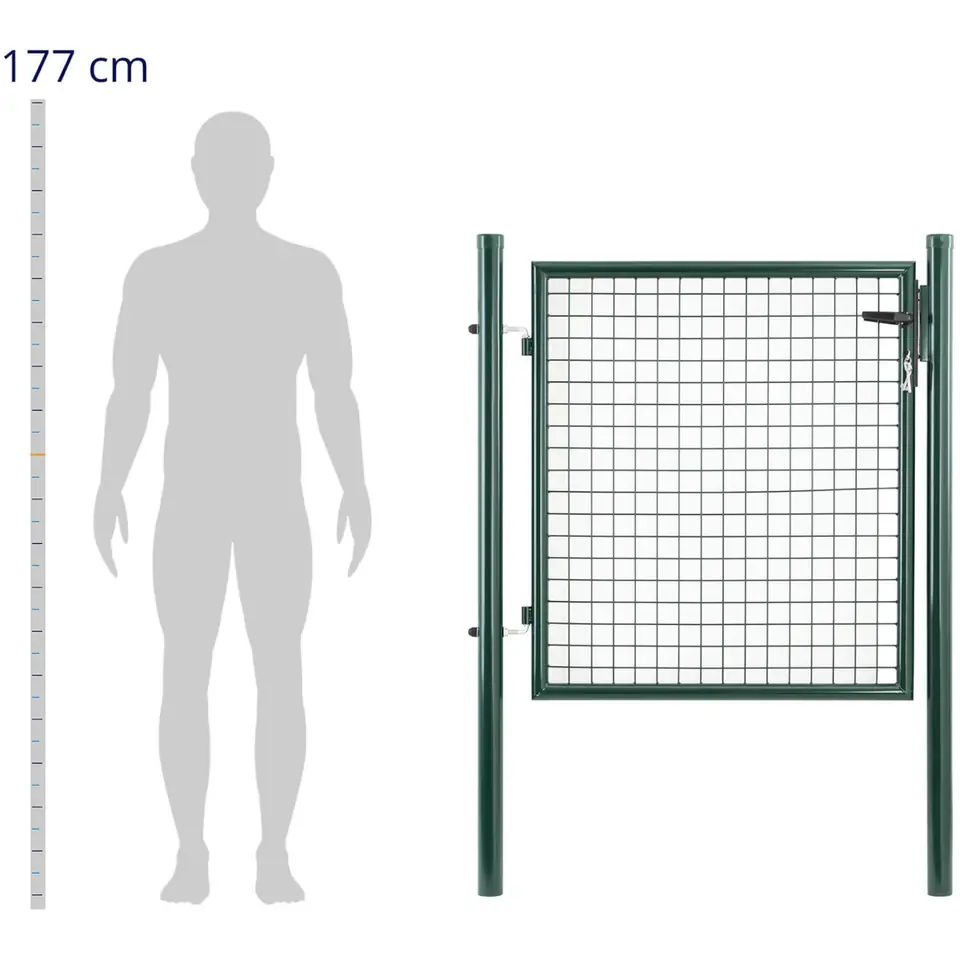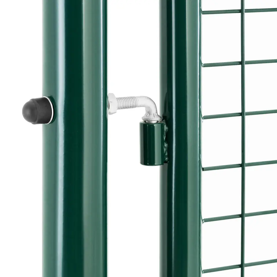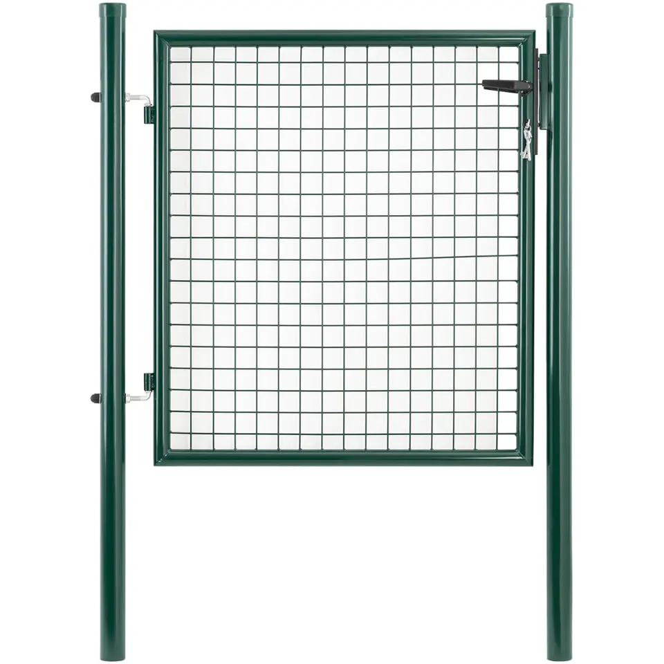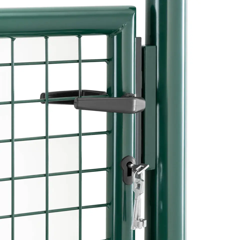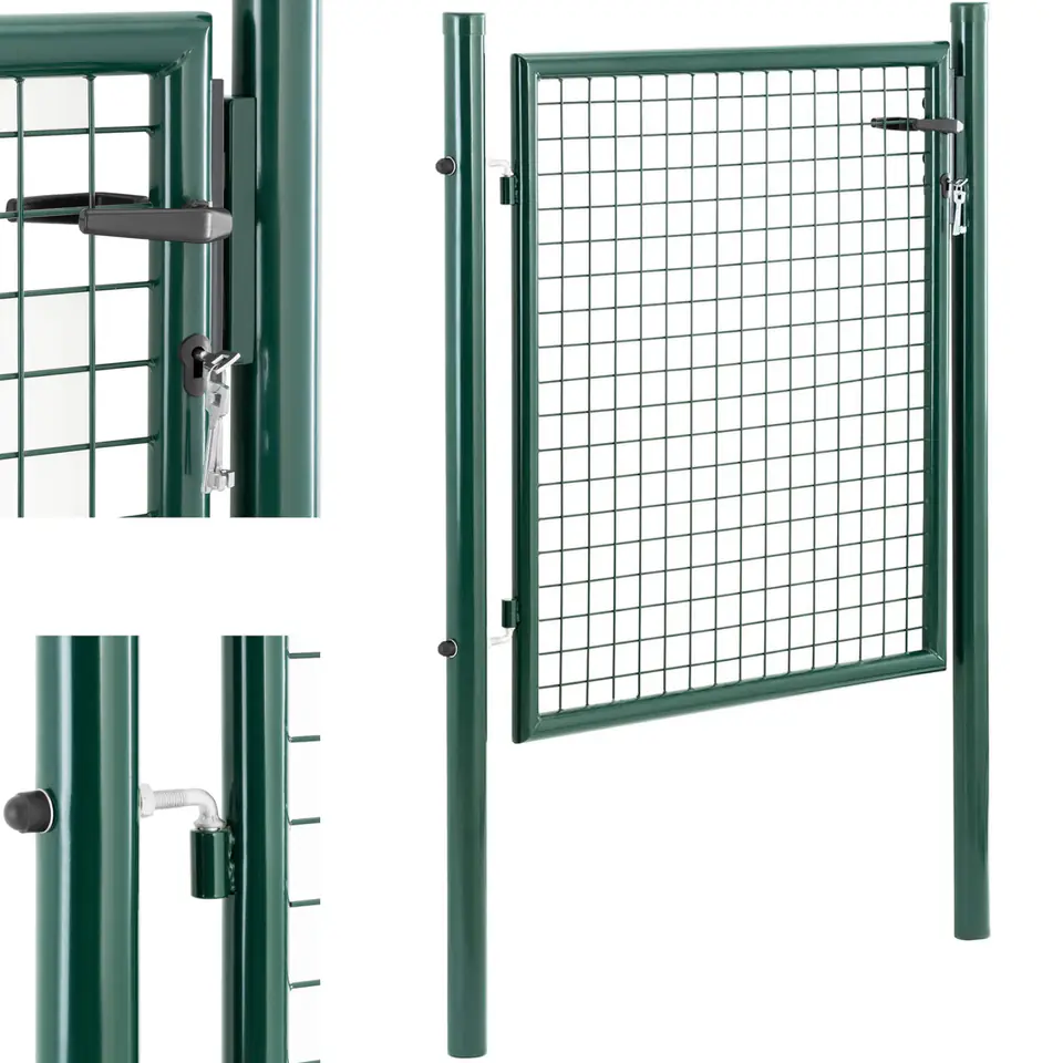 Kod producenta: 10280374Wysokiej jakości metalowa furtka ogrodowa firmy Wiesenfield jest odporna na warunki pogodowe. Łatwo ją zamontować, by ochronić ogród, taras, trawnik lub wybieg przed niepożądanymi gośćmi. Bramka ogrodowa o wymiarach 86 x 100 cm wykonana jest z wysokiej jakości stali malowanej proszkowo, która chroni bramkę przed rdzą i promieniowaniem UV. Solidne słupki o średnicy 60 mm i wysokości 150 cm oraz ścianki o grubości 1,5 mm i gwarantują stabilną podstawę. Podczas montażu można zdecydować o tym, czy furtka ogrodowa otwiera się do wewnątrz, czy na zewnątrz. Po ustawieniu słupków bramkę metalową można zawiesić na zawiasach bez użycia narzędzi. Oprócz słupków w komplecie znajduje się również klamka, zamek oraz 3 klucze. Dzięki oczkom siatki o wymiarach 50 x 50 mm furtka ogrodowa doskonale pasuje do standardowych płotów z paneli ogrodzeniowych. Można ją łatwo połączyć z innymi rodzajami ogrodzeń, takimi jak murki, żywopłoty czy płoty z drutu.Cechy produktu:- Solidne słupki o średnicy 60 mm i grubości materiału 1,5 mm,- Zamek i 3 klucze, aby chronić ogród, taras, trawnik lub wybieg przed nieautoryzowanym dostępem,- Kompletny zestaw i nieskomplikowany montaż w gruncie lub betonie,- Trwała i solidna konstrukcja ze stali malowanej proszkowo zapewnia wysoką odporność na wiatr, warunki pogodowe i rdzę.Parametry techniczne: