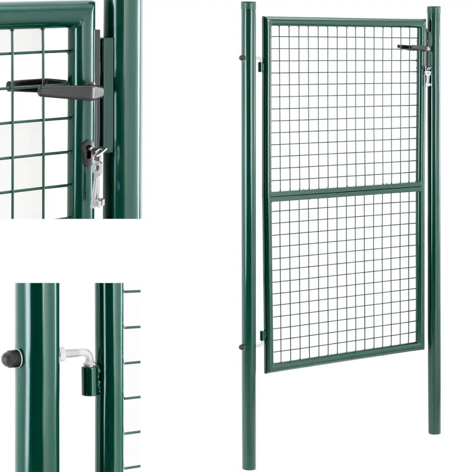 Kod producenta: 10280373Wysokiej jakości metalowa furtka ogrodowa firmy Wiesenfield jest odporna na warunki pogodowe. Łatwo ją zamontować, by ochronić ogród, taras, trawnik lub wybieg przed niepożądanymi gośćmi. Bramka ogrodowa o wymiarach 87 x 150 cm wykonana jest z wysokiej jakości stali malowanej proszkowo, która chroni bramkę przed rdzą i promieniowaniem UV. Solidne słupki o średnicy 60 mm i wysokości 196 cm oraz ścianki o grubości 1,5 mm gwarantują stabilną podstawę. Podczas montażu można zdecydować o tym, czy furtka ogrodowa otwiera się do wewnątrz, czy na zewnątrz. Po ustawieniu słupków bramkę metalową można zawiesić na zawiasach bez użycia narzędzi. Oprócz słupków w komplecie znajduje się również klamka, zamek oraz 3 klucze. Dzięki oczkom siatki o wymiarach 50 x 50 mm furtka ogrodowa doskonale pasuje do standardowych płotów z paneli ogrodzeniowych. Można ją łatwo połączyć z innymi rodzajami ogrodzeń, takimi jak murki, żywopłoty czy płoty z drutu.Cechy produktu:- Solidne słupki o średnicy 60 mm i grubości materiału 1,5 mm,- Zamek i 3 klucze, aby chronić ogród, taras, trawnik lub wybieg przed nieautoryzowanym dostępem,- Kompletny zestaw i nieskomplikowany montaż w gruncie lub betonie,- Trwała i solidna konstrukcja ze stali malowanej proszkowo zapewnia wysoką odporność na wiatr, warunki pogodowe i rdzę.Parametry techniczne: