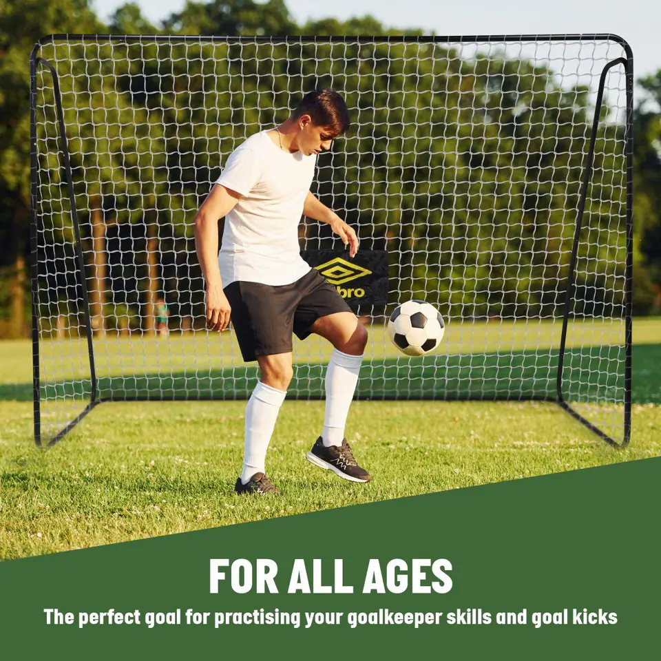 Stwórz w swoim ogrodzie czy na działce prywatne boisko do piłki nożnej! Baw się jeszcze lepiej, strzelaj gole, ćwicz celność i skończ z bieganiem po piłkę. BRAMKA DO PIŁKI NOŻNEJ Z SIATKĄ 300x205x120cm UMBRO to świetny sposób na trening z przyjaciółmi, rodziną, dziećmi i ćwiczenie gry. Kiedy tylko chcesz - bez jeżdżenia na boisko.