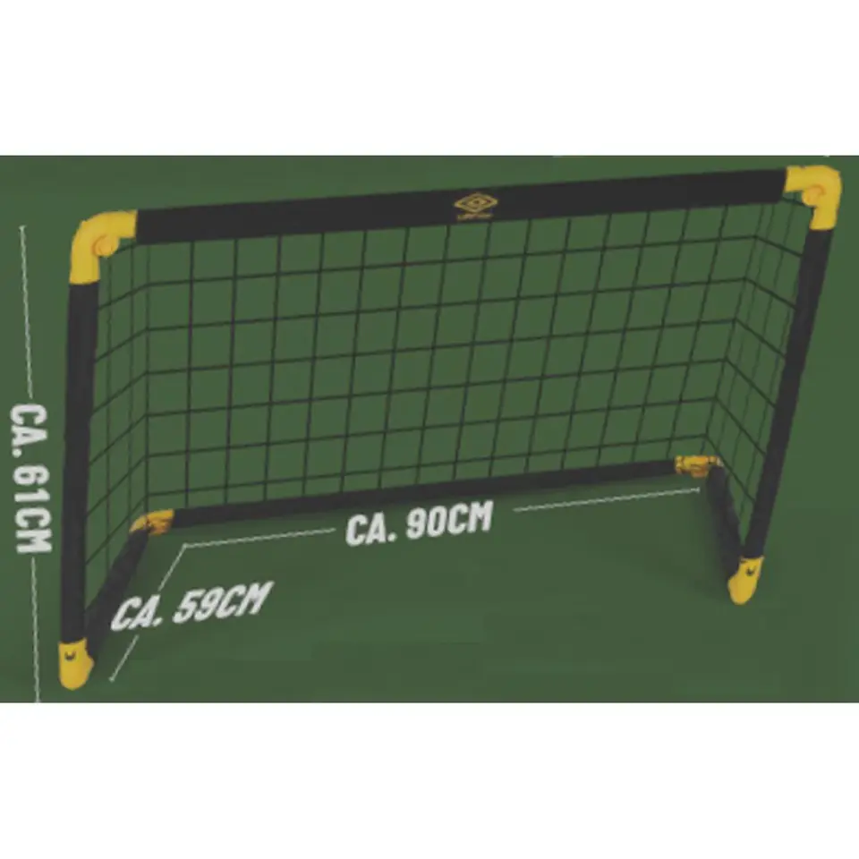 Parametry:- Wymiary rozłożonej bramki: 90 x 61 x 59 cm (szer. x wys. x gł.)Wymiar złożonej bramki: 90 x 10 x 8 cm (dł. x szer. x wys.)Szerokość oczek w siatce: 5 cmWymiary rurek: średnica 30 mmKolor: czarny, żółtyMateriał: tworzywo sztuczne, nylonWaga netto: 0,800 kgWaga brutto: 1,100 kgWymiary opakowania: 91 x 8 x 17 cm (dł. x gł. x szer.)Zestaw zawiera składaną bramkę, 4 śledzieMarka: UmbroPrzeznaczenie: dla dzieci powyżej 3 latCertyfikat CE: Tak