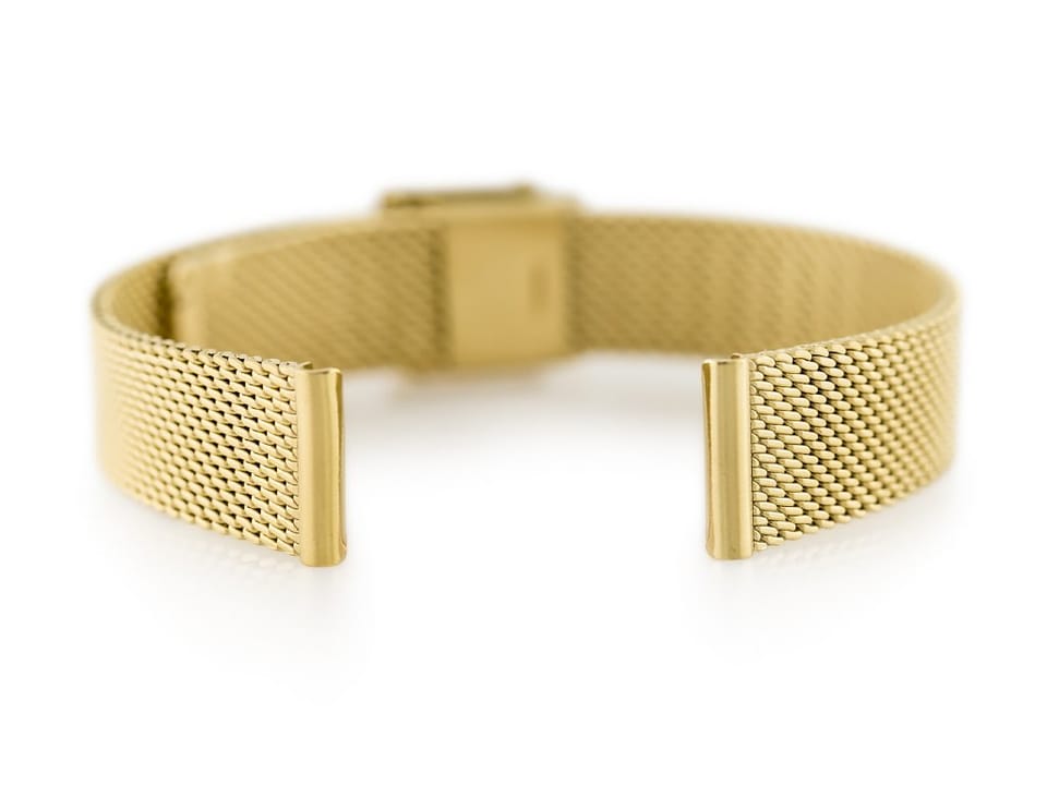 OPIS:Metalowa bransoletka wysokiej jakości typu "siatka" w kolorze złotym z możliwością regulacji. Zakres regulacji długości to ok. 54mm.Bransoleta posiada zabezpieczenie przed przypadkowym otwarciem.