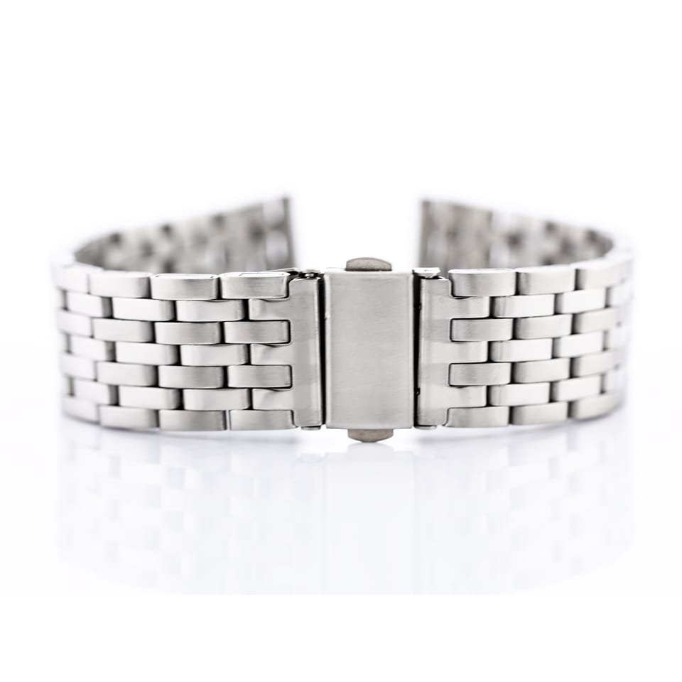 OPIS:Metalowa bransoletka do zegarka wysokiej jakości w kolorze srebrnym. Możliwość skrócenia bransolety poprzez usunięcie ogniw - można usunąć maksymalnie 6, szerokość jednego ogniwa to ok. 7mm.