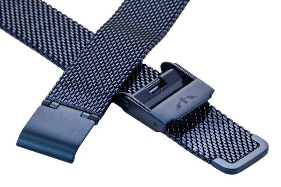 Stalowa bransoletka wysokiej jakości z klasycznym zapięciem w kolorze granatowym.