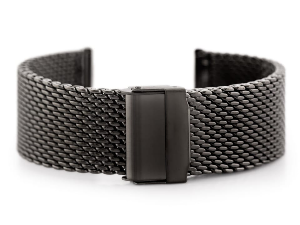 Stalowa bransoletka do zegarka typu 'siatka' wysokiej jakości w kolorze grafitowym, wykończenie matowe
