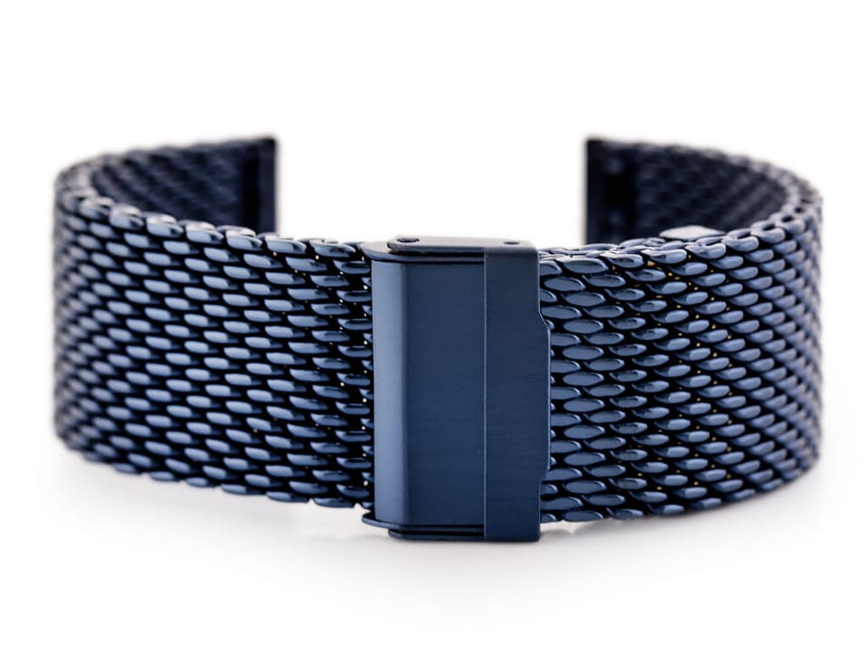 Stalowa bransoletka do zegarka typu 'siatka' wysokiej jakości w kolorze granatowym