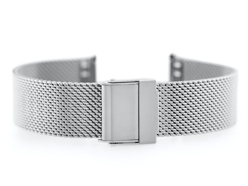 Stalowa bransoletka do zegarka typu 'siatka' wysokiej jakości w kolorze srebrnym