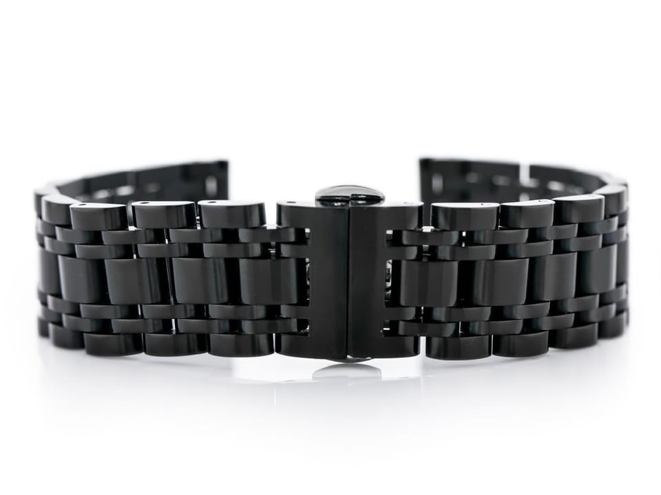 Stalowa bransoletka z zapięciem motylkowym do zegarka wysokiej jakości w kolorze czarnym.
