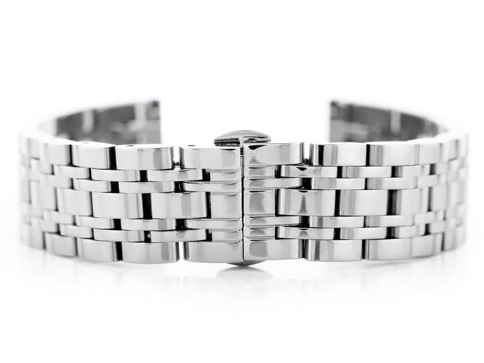 Stalowa bransoletka z zapięciem motylkowym do zegarka wysokiej jakości w kolorze srebrnym.