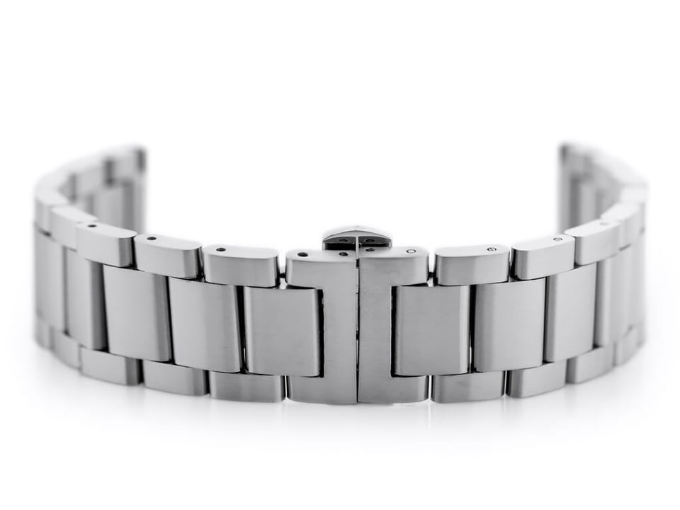 Stalowa bransoletka z zapięciem motylkowym do zegarka wysokiej jakości w kolorze srebrnym.