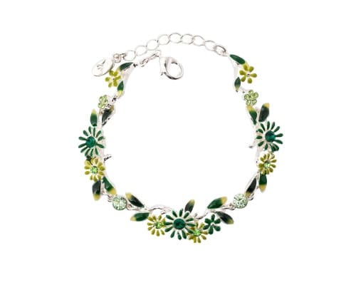 Bransoletka delikatne, zielone kwiatuszki z kryształkami z kolekcji Blossom B8155AG/Z