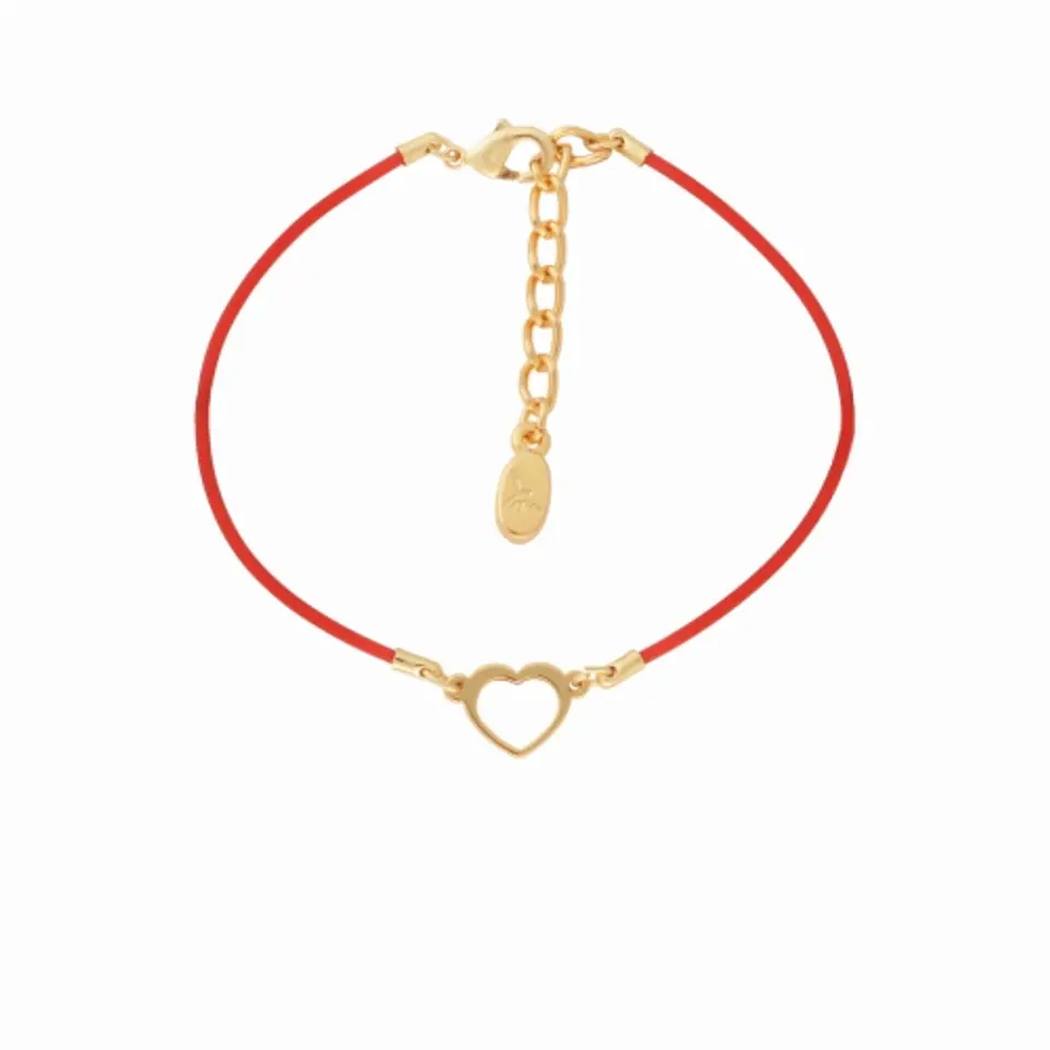 Bransoletka na czerwonej gumce z zawieszką - wycięte serce to wyjatkowy prezent dla ukochanej osoby.Długość bransoletki 15cm plus przedłużka 4cm.