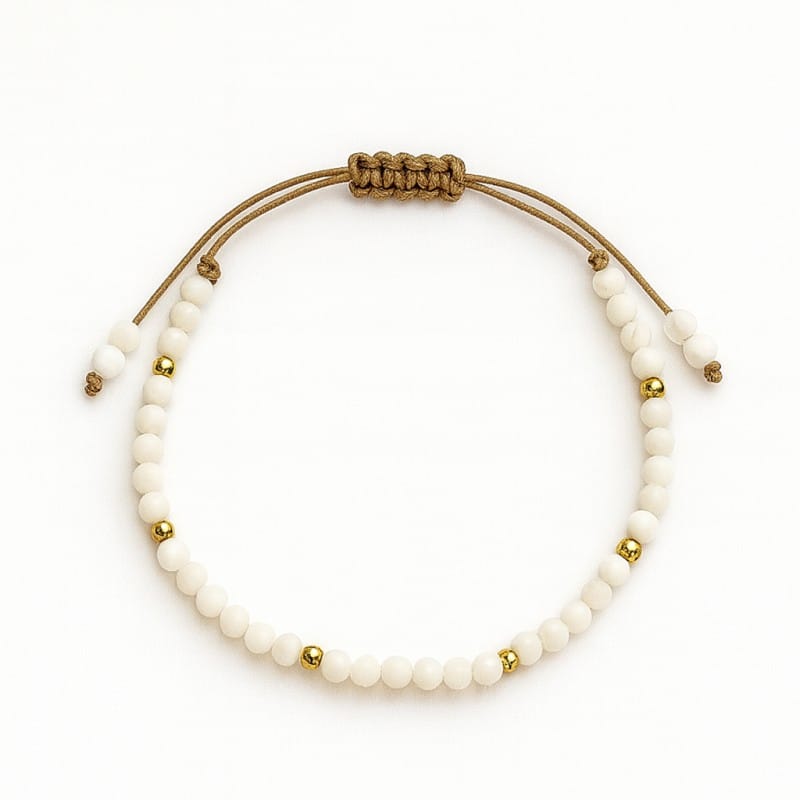 Bransoletka na rękę stal chirurgiczna pozłacana 14k złotem, biała na sznurku regulowana BST1567
