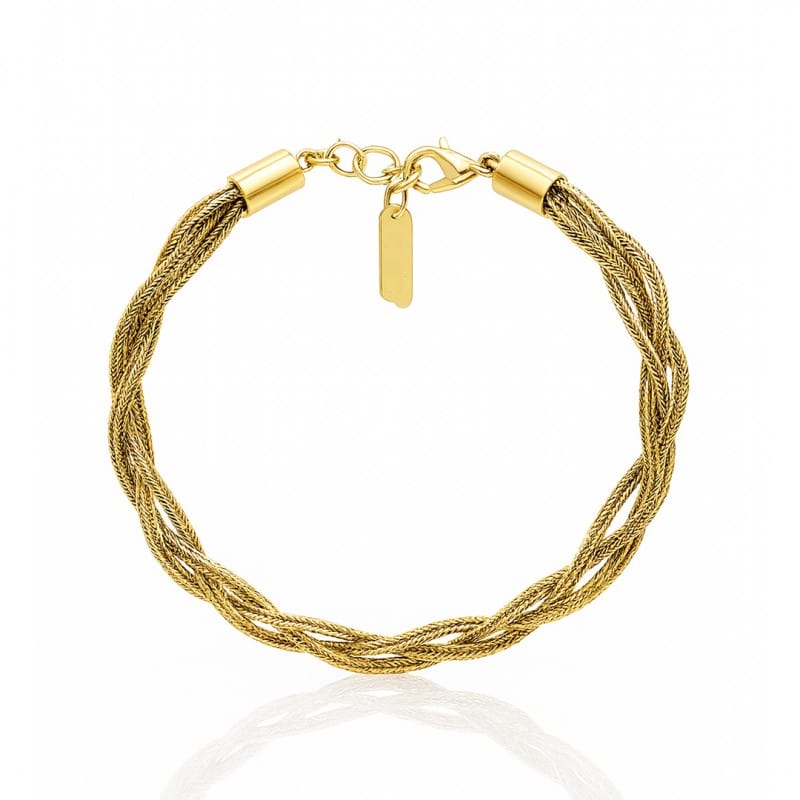 Modna bransoletka ze stali nierdzewnej platerowana 14 karatowym złotemŚwietnie pasuje do eleganckich, jak również do codziennych stylizacjiElegancki dodatek na każdą okazję, do sukienek, spódnic, spodenek. Wymiary:17,5 cm + 3 cm regulacja Wymiar kartonika:10 cm x 8 cm Waga:5 g netto / 6 g brutto STAL CHIRURGICZNA jest odporna na warunki atmosferyczne, nie ulega korozji, nie rdzewieje, nie śniedzieje.