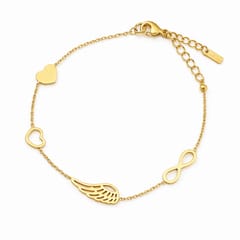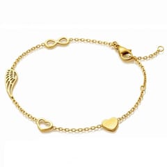 Bransoletka na rękę stal chirurgiczna pozłacana 14k złotem Celebrytka, skrzydełko, serca BST1554