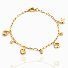 Bransoletka na rękę stal chirurgiczna pozłacana 14k złotem, koniczynka BST1591