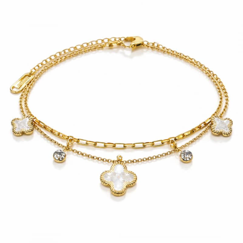 Bransoletka na rękę stal chirurgiczna pozłacana 14k złotem, koniczynka, podwójna BST1688