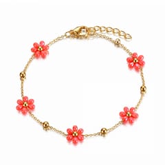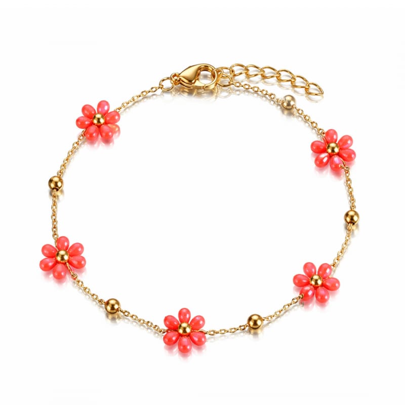 Bransoletka na rękę stal chirurgiczna pozłacana 14k złotem, Koralowe Kwiatuszki BST1627
