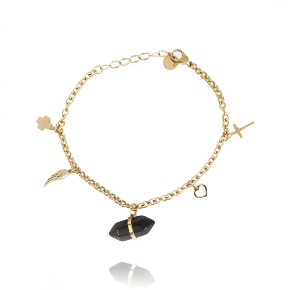 Bransoletka na rękę stal chirurgiczna pozłacana 14k złotem kryształ górski BST1407CZ