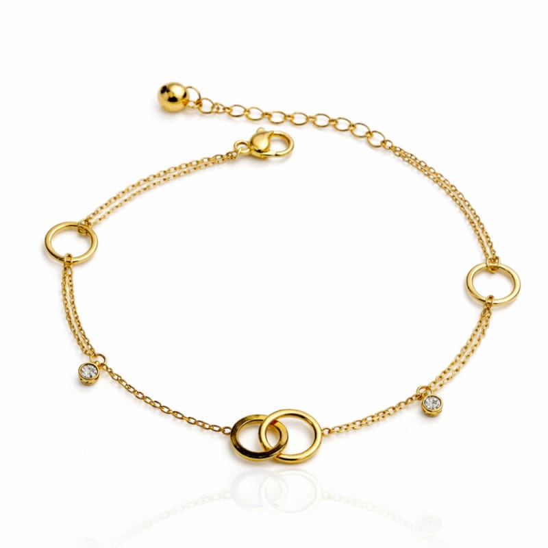 Bransoletka na rękę stal chirurgiczna pozłacana 14k złotem, okręgi BST1600