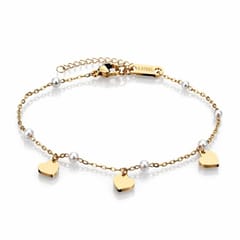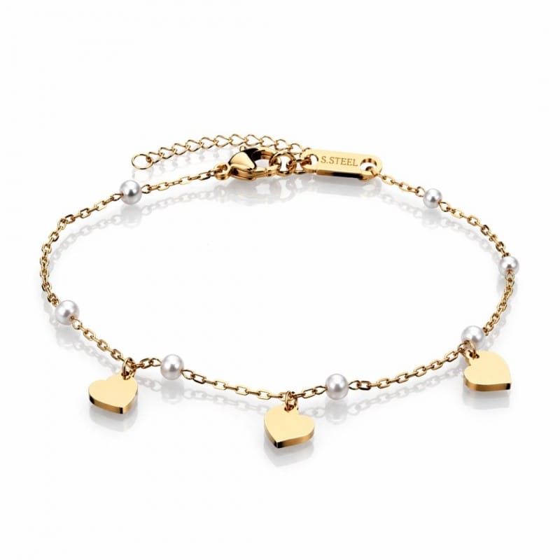 Bransoletka na rękę stal chirurgiczna pozłacana 14k złotem, Perełki, Serduszka BST1689