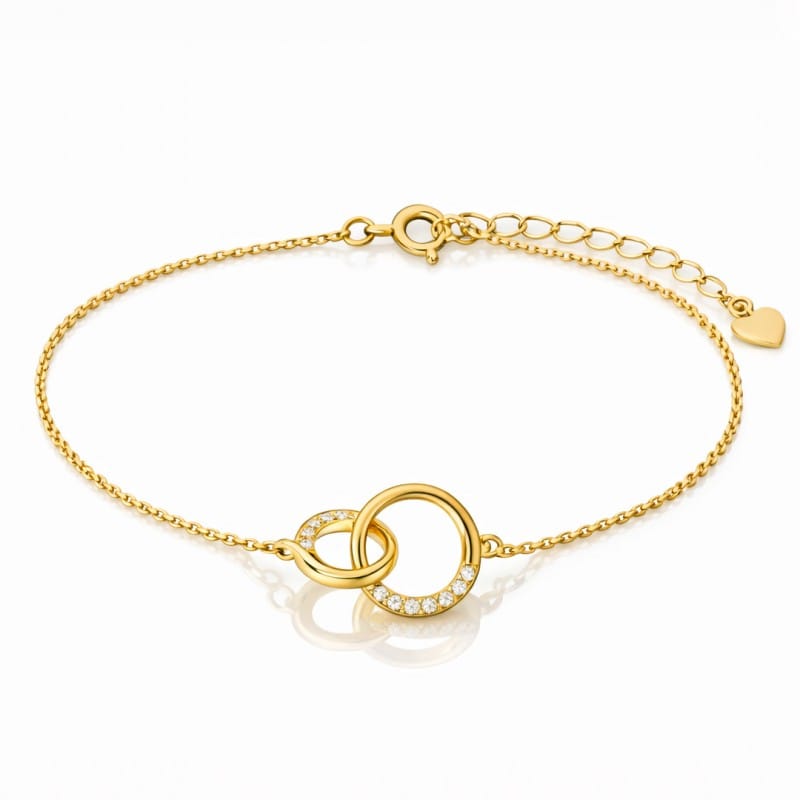 Bransoletka na rękę stal chirurgiczna pozłacana 14k złotem zaplecione kółka, cyrkonie BST1600