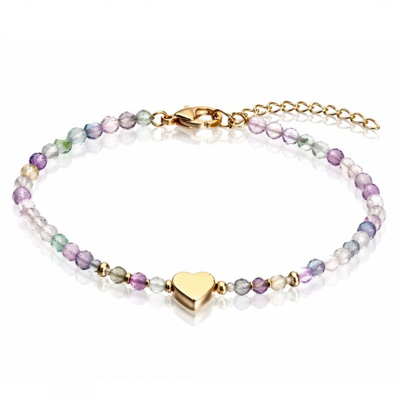 Bransoletka na rękę stal chirurgiczna pozłacana 18k złotem, Serce, Kamienie Fluoryt BST1613