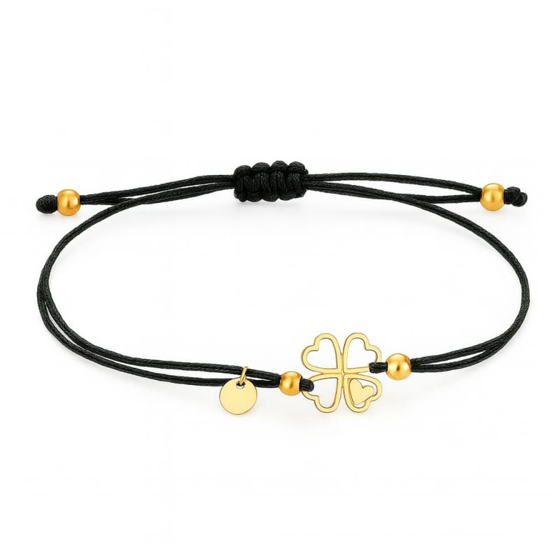 Bransoletka na rękę stal chirurgiczna pozłacana KONICZYNA, czarna na sznurku BST1553CZ