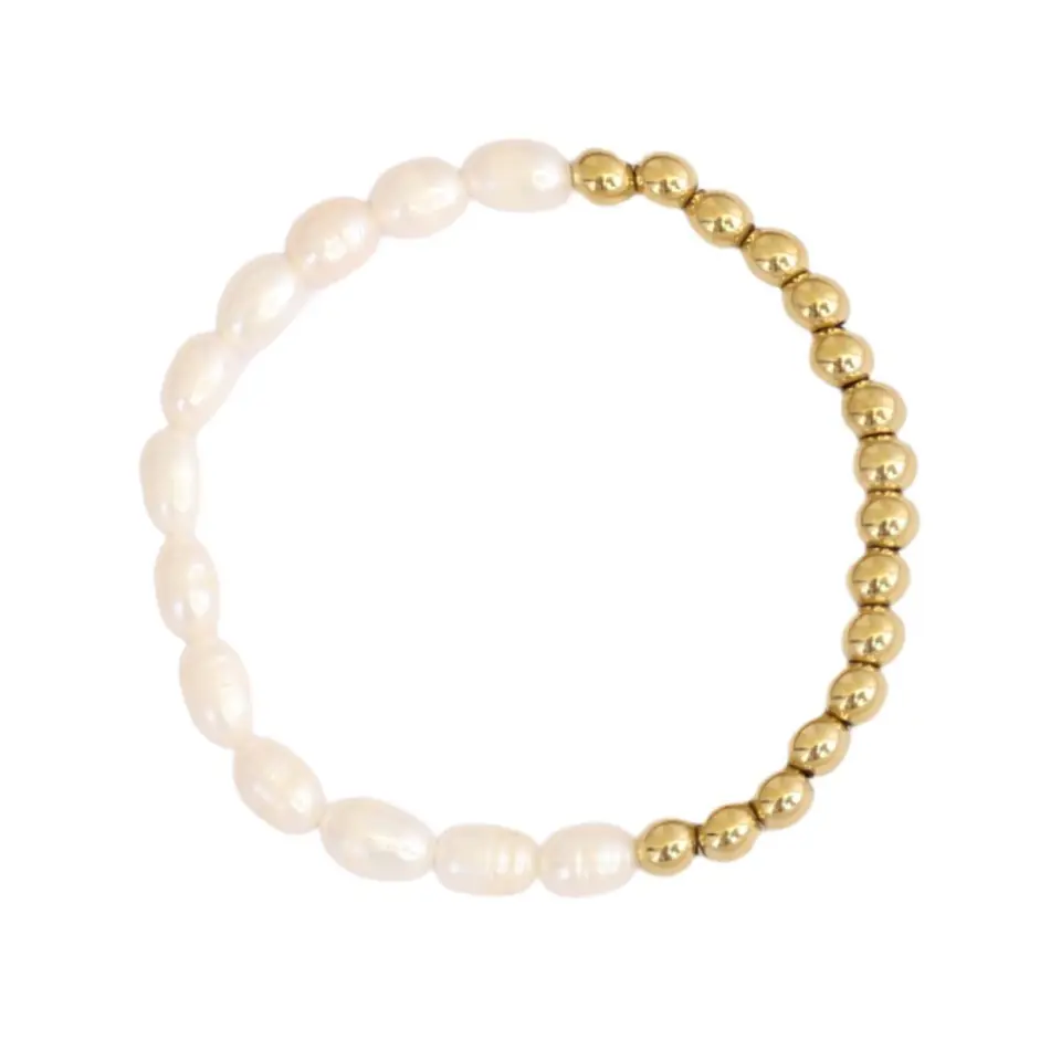 Bransoletka na rękę stal chirurgiczna pozłacana z perłą 14k złotem BST1431