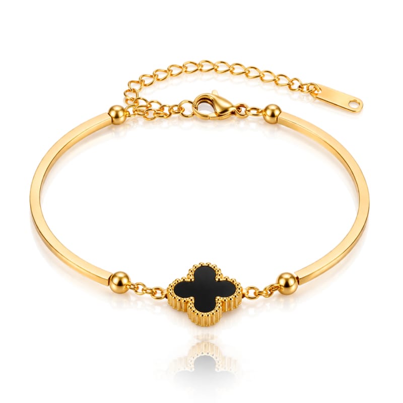 Bransoletka na rękę stal szlachetna platerowana 14k złotem, koniczynka czerń BST1599