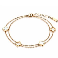 Bransoletka na rękę stal szlachetna pozłacana 14k złotem, koniczynka, podwójna BST1691