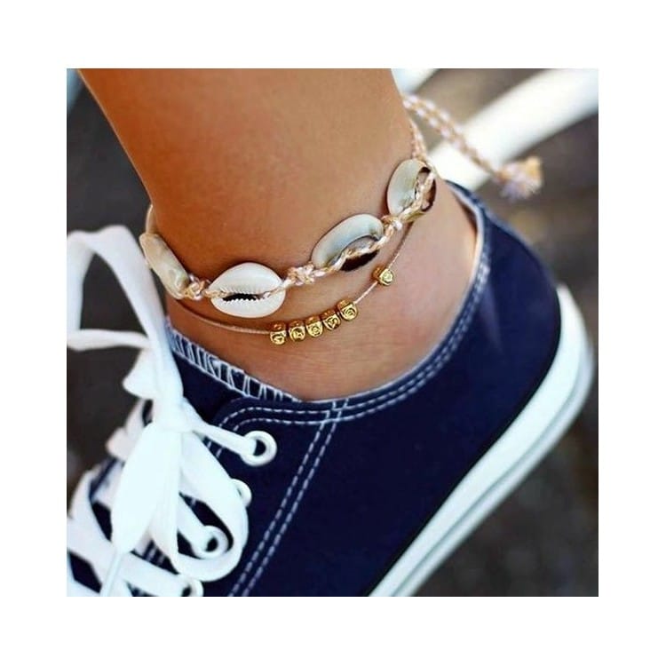 Bransoletka na stopę z muszelkami od Bransoletka składa się z 2 osobnych bransoletekBransoletka złota na stopę z muszelkami Bransoletka z regulacjąWykonana ze stopu metali nieszlachetnychNie zawiera niklu ani chromu Wymiary:Podane na ostatnim zdjęciu