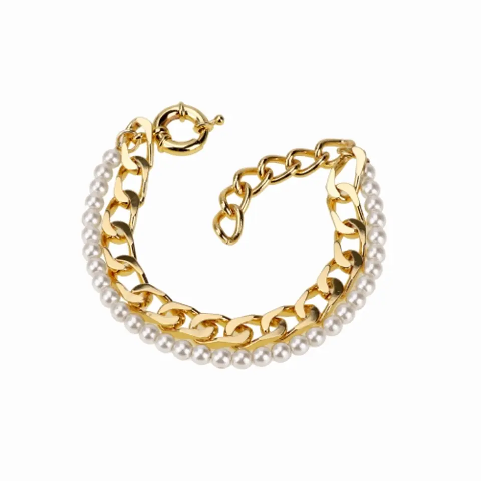 Najnowsza kolekcja Colibra Igual łączy w sobie piękno i delikatność pereł z mocnymi elementami takimi jak grube łańcuchy o różnych splotach czy duże zawieszki. Bransoletka pozłacana długości 16 cm, Długość bransoletki wynosi 20cm + przedłużka 5cm.