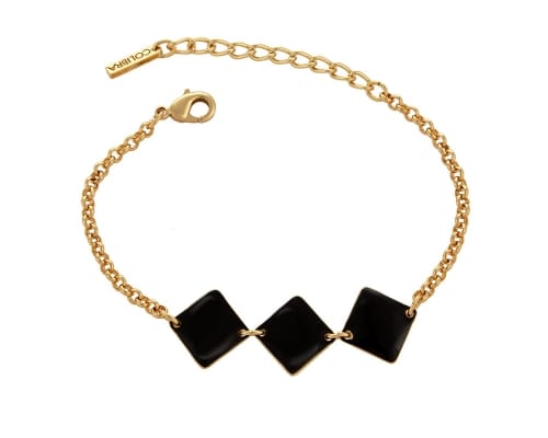 Bransoletka pozłacana z trzema płaskimi rombami malowanymi emalią na czarno. Długość bransoletki 18,0 cm + 4,0 cm przedłużki. Waga bransoletki 7,0 g.