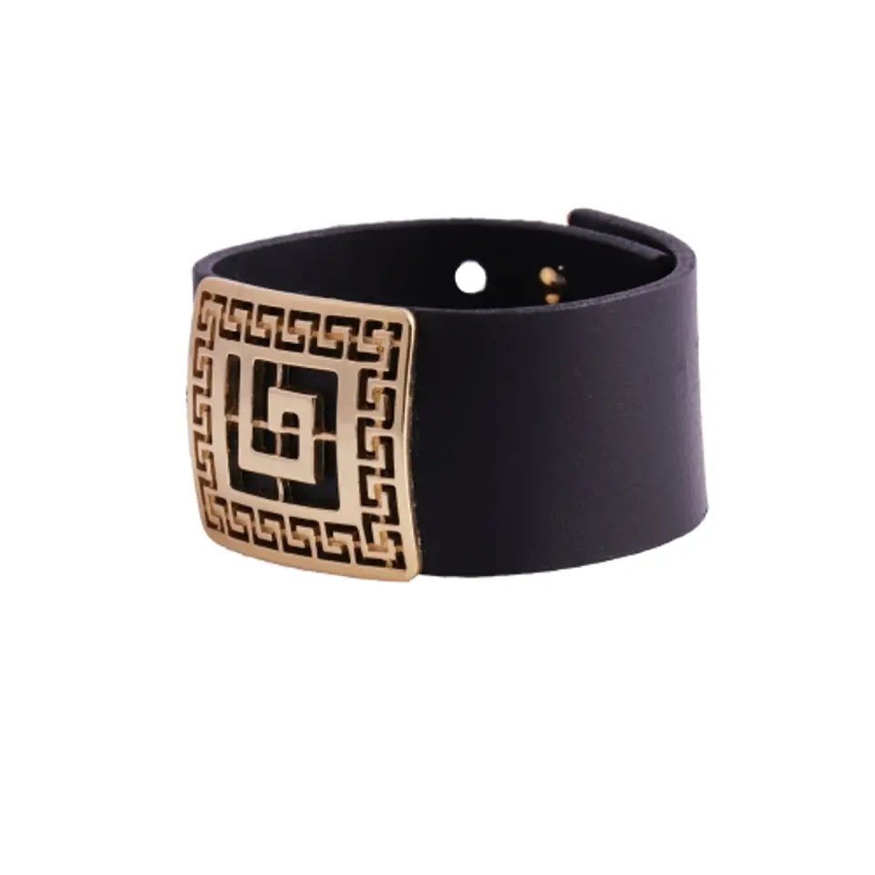 Bransoletka skórzana z klamrą zdobioną grecką drogą.